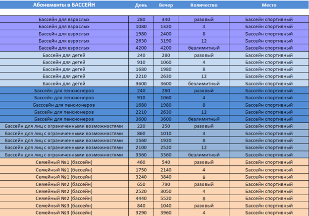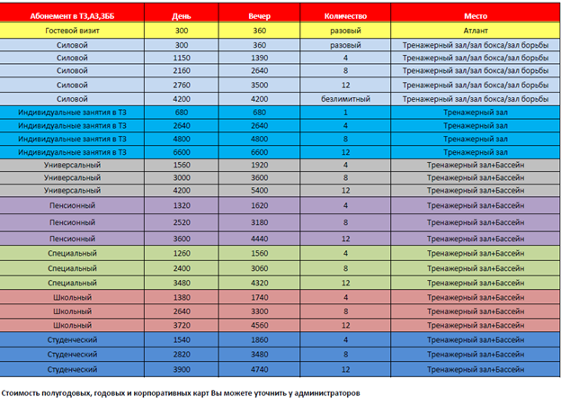 с 01.09.2025 актуальные цены на посещение МАУ МСОК "Атлант" :